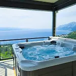The kitchen amenities at Villa Skyview Mit Infinitypool Und Panorama Meerblick feature an electric kettle, a cooktop, and kitchenware, provided in an outdoor dining area. Konoba Galinac is a barbecue serving Mediterranean dishes about a 10-minute ride from the property. The nearest bus stop, Brela, is 700 metres away. A Jacuzzi and a sauna are available on-site.